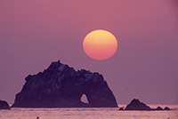 荒波に侵食されてできた洞窟から日の出が浮かぶととても美しい景観を生みます。